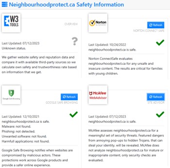 Google, Norton and McAfee rated Neighbourhood Protect as safe.